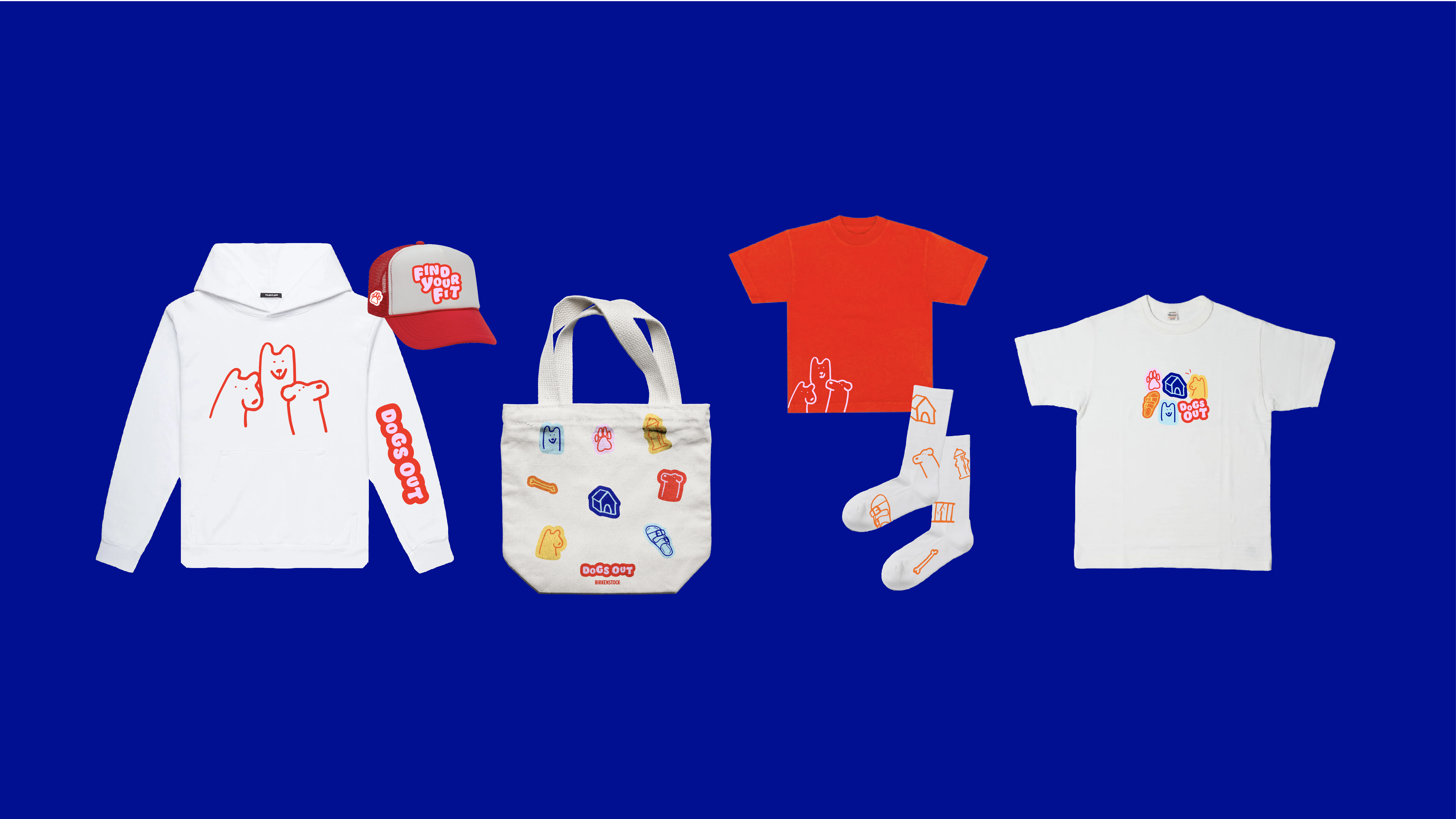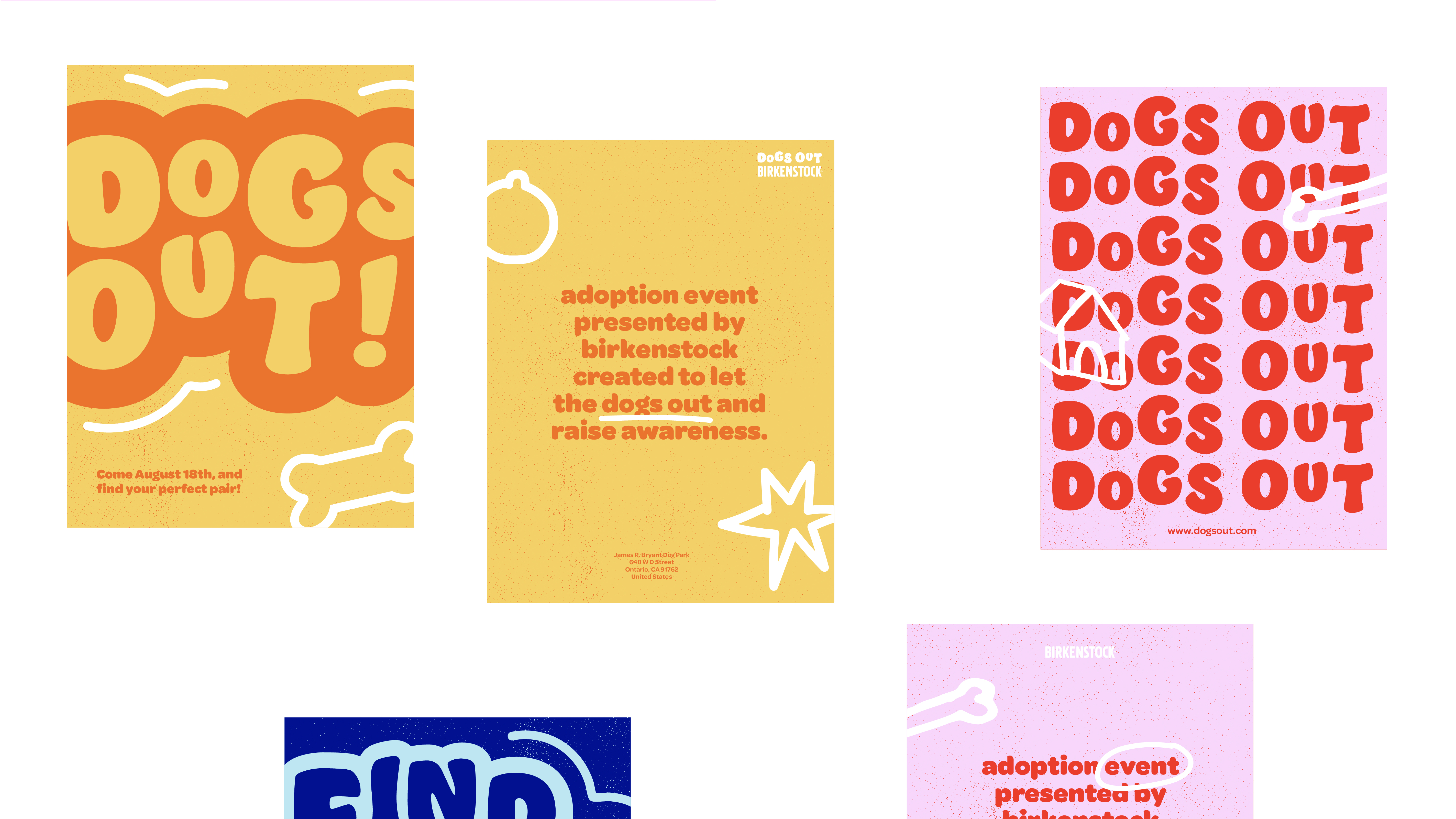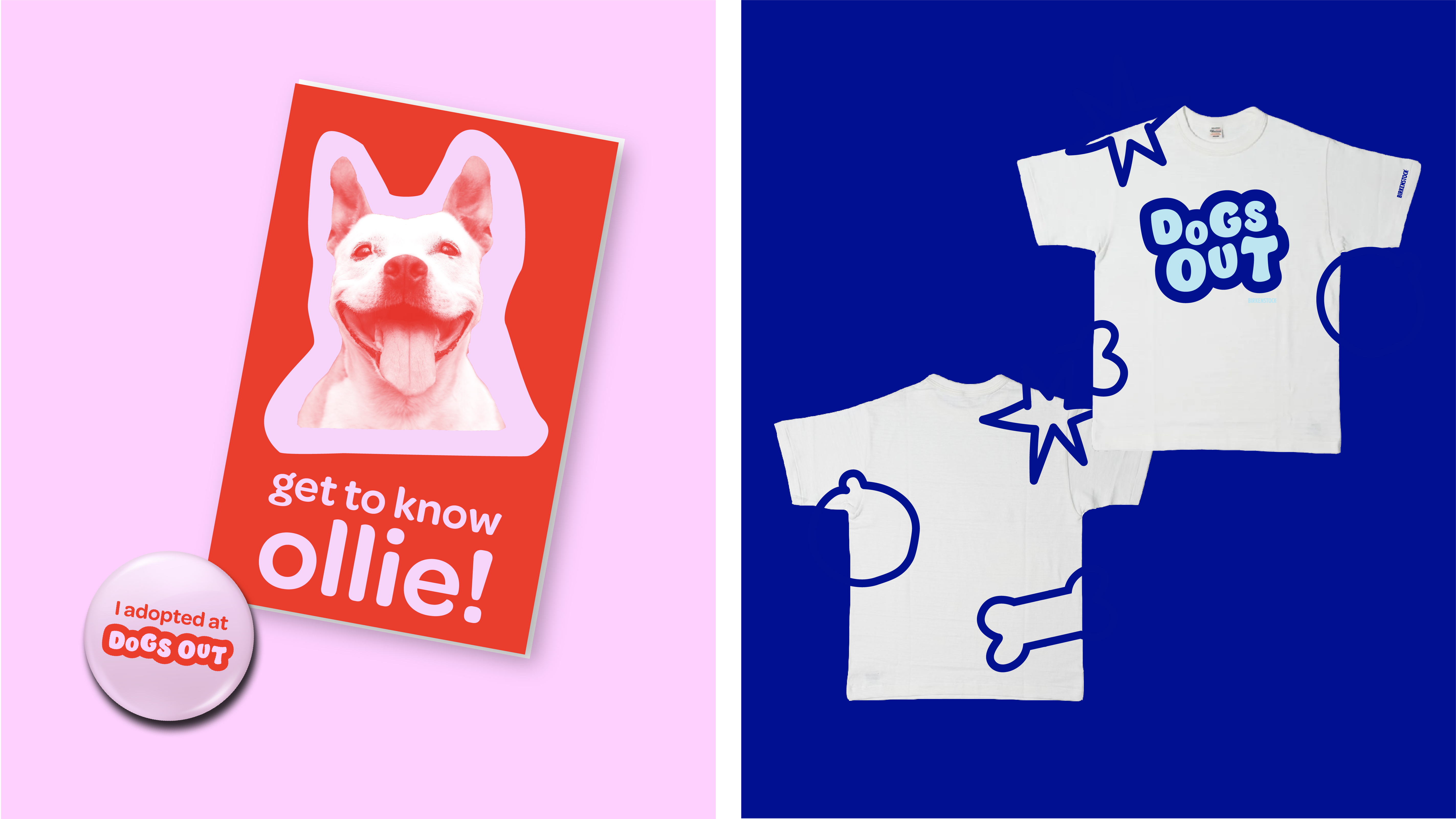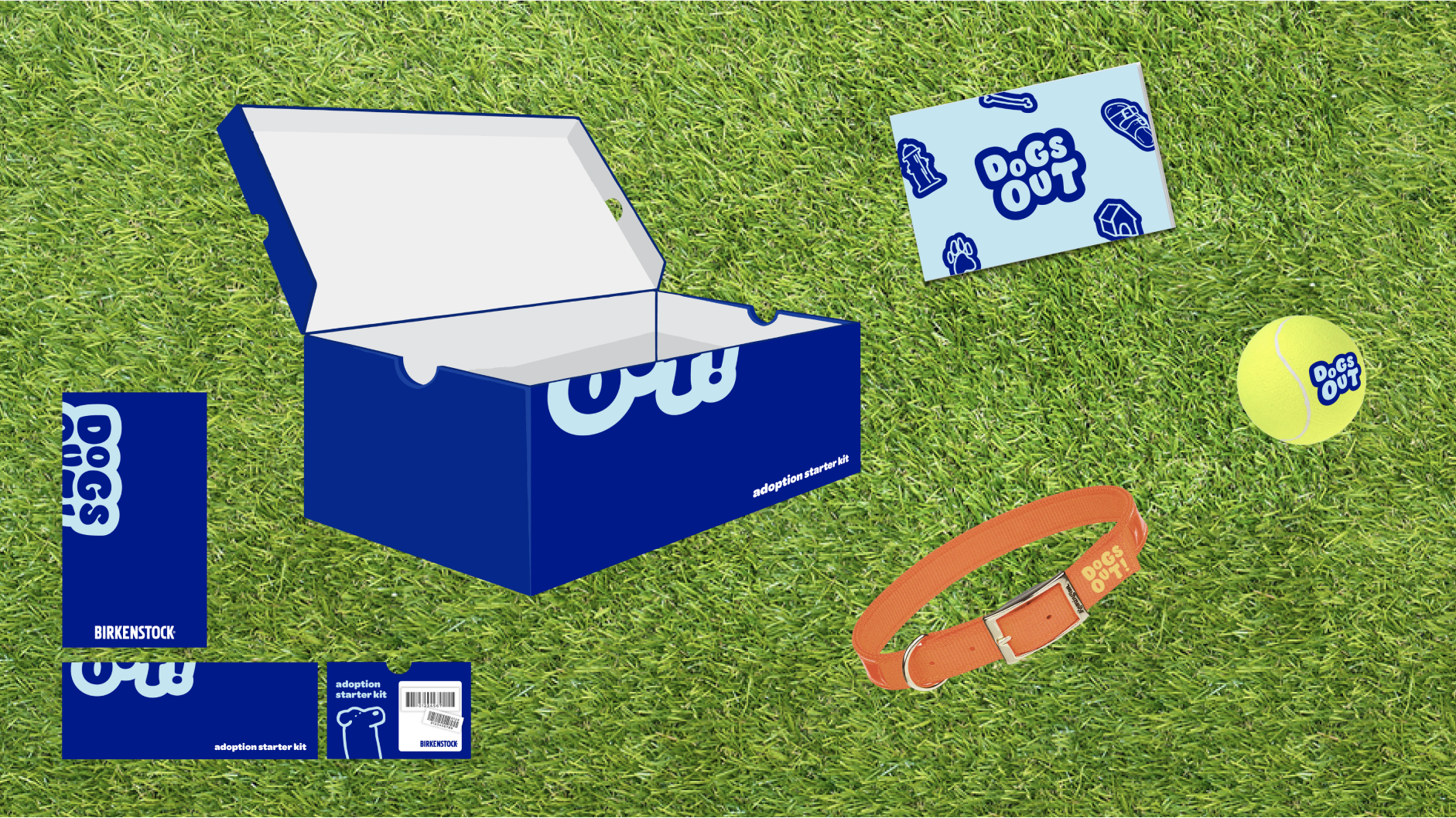 The Dogs Out campaign is a dog adoption event held by Birkenstock. The play on dogs out refers to one's feet being out. The dog characters and other icons act as mascots for this event, bringing out the energy and fun-loving nature of the company.